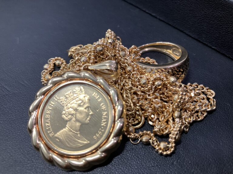 金には「24金」から「9金」までのように純度を示すグレードがあり、一般的にこの純度が高いほど、金としての価値も高くなります。たとえば、24金(K24)はほぼ純金で、最も高い価値がつきます。一方で、18金(K18)や14金(K14)などは他の金属を混ぜた合金であり、純度が下がる分、買取価格にも差が出てきます。